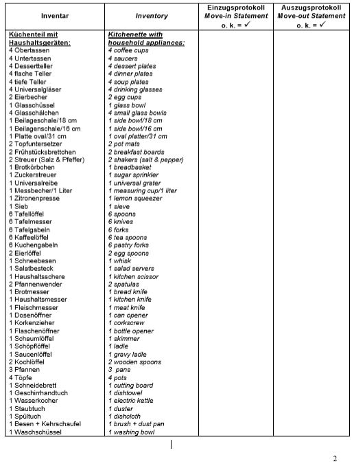 Einzugsprotokoll, Wohnungsübergabe, übergabeprotokoll 등